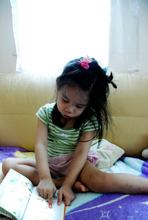 After a hard day work, it's always a blessing to come back and saw my lil'chic doing some reading on her own. Keep it up dear :)
